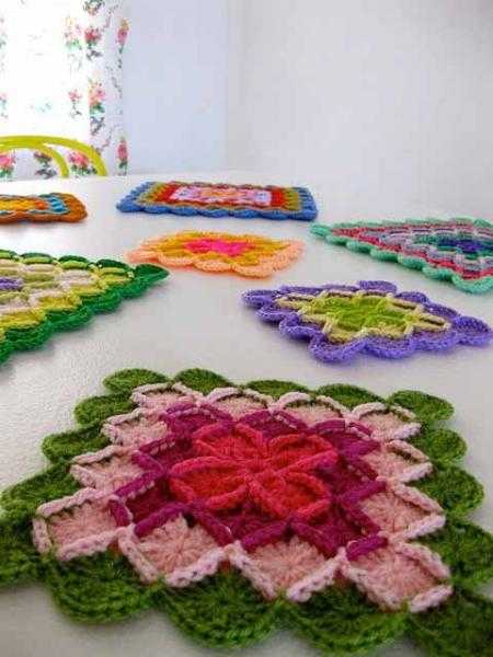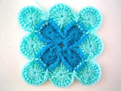 - 12 столбиков с 2-мя накидами, провязывая каждый в вершину лепестка.