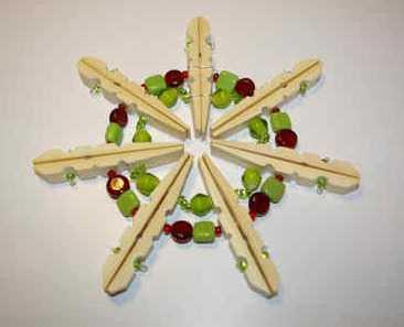 Сначала вам надо будет разобрать прищепки, сложить половинки обратной стороной друг к другу (см. фото), соеденить их (склеить, но можно и не соединять), а затем проделать в них отверстия на одинаковом расстоянии. Это - самое сложное при изготовлении звезд из прищепок.