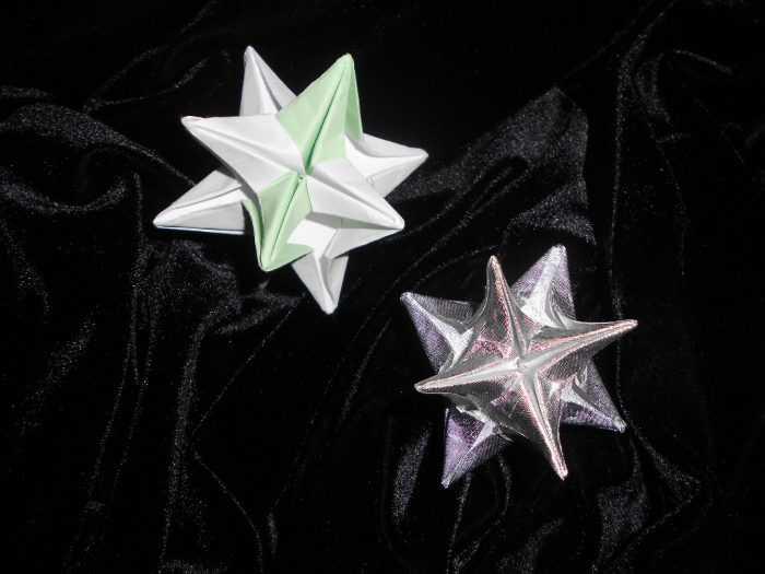 Вам потребуется 6 одинаковых квадратов бумаги (у вас будет 6 «катамаранов»). Размер их может быть любым. Очень красивая звезда получается, если размер квадрата 15х15 см. А в предлагаемом видео уроке размер листочков 8х8 см.