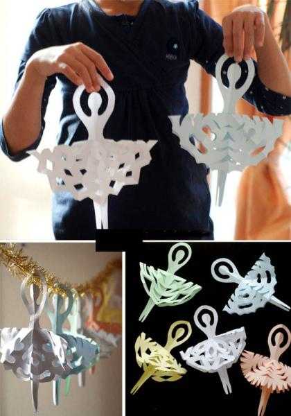 Затем делаем для балерин юбки – обычные снежинки, но с большим вырезом посередине.