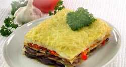 В форму укладываем слоями: лаваш, поджаренный фарш, опять лаваш, жареные овощи, лаваш и так далее. Слои можно повторить несколько раз. Сверху залейте соусом, посыпьте тертым сыром и поставьте в духовку минут на 40 до зарумянивания.