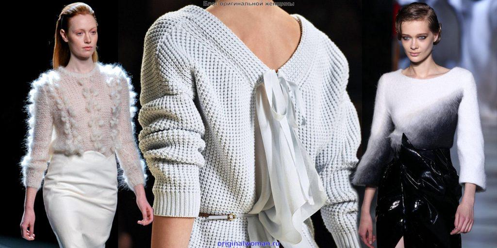 Среди модных тенденций в вязаном мире отмечается актуальность утепления и рельефности вязки, асимметричные вырезы, аккуратные горловины и хомуты. Так называемый бельевой стиль тоже на пике популярности – сочетать объёмные свитера с тонкими платьями теперь не просто можно, а настоятельно требуется.
