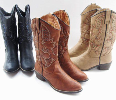 Надолго вышедшие из моды сапоги женские в ковбойском стиле, снова празднуют свое возвращение. Выбор огромен — от скромных и грубых до броских и элегантных. У многих заостренный носок и широкий средний каблук, который закругляется под пяткой. Часто вверху голенища с двух сторон пришиты декоративные ремешки. Нижнюю часть украшают пряжки и вышивка.