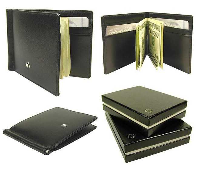 Кошелек с зажимом: Это бумажник, в котором нет отделения для наличных денег. Он имеет только разделы для кредитных карт. Наличные защелкиваются зажимом. Он также называется бумажником для переднего кармана.