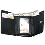 Бумажник тройного сложения: Складывается три раза. Кредитные карты могут быть размещены только по вертикали. Много купюр положить нельзя, так как кошелек будет громоздким.