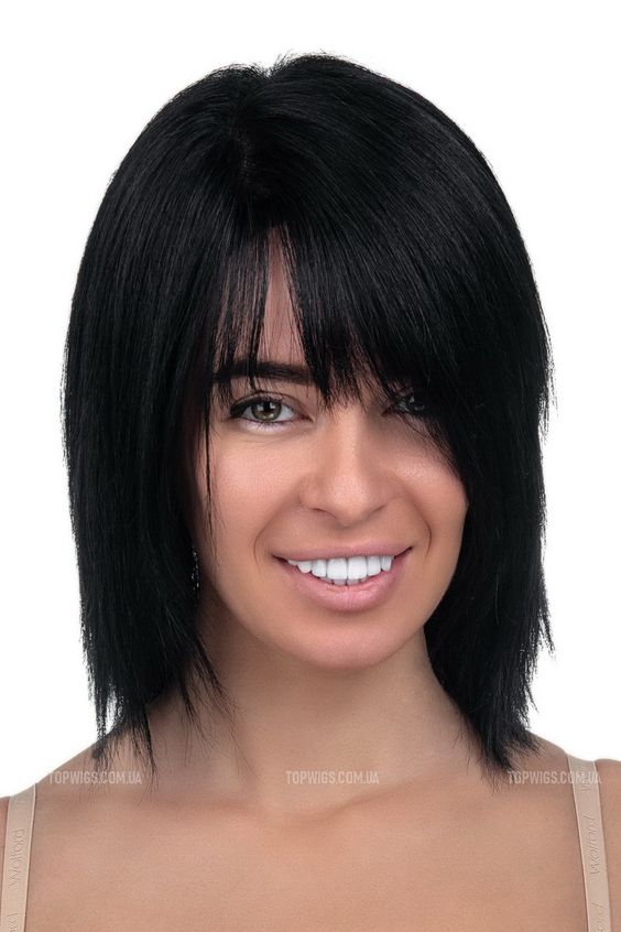 Никаких геометрических стрижек, они сделают лицо более угловатым. Уместны прически с мягкими локонами, стрижки с удлиненной челкой. Это зрительно смягчит черты лица. Скулы можно скрыть длинными, затененными прядями. Концы прядей могут перекрывать щеки. Парики от короткой до средней длины станут лучшим выбором для этой формы лица. Рассмотрите модели с тонкими челками. Вы будете прекрасно смотреться с завитками или волнистыми прядями.