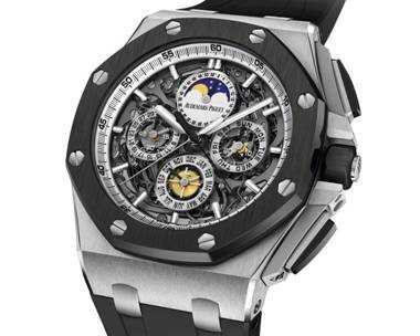 Это, пожалуй, единственный производитель часов, который конкурирует с Patek Philippe с точки зрения производства самых дорогих брендов в мире. Royal Oak Complication имеют автоподзавод, покрыты 18-каратным белым золотом. Часы имеют прозрачную сапфировую заднюю крышку корпуса и вечный календарь с указанием дня, недели, месяца, фазы Луны, високосного года и т.д.