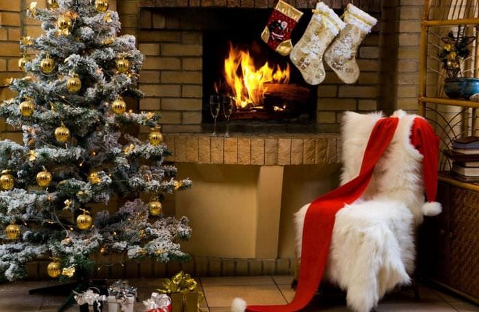 Новый год — повод заменить обычный домашний текстиль праздничным. Используйте яркие диванные подушки и плед на кресле в одной цветовой гамме. Попробуйте постелить отрез меха на полу у комода, камина или возле елки. Обязательно развесьте по дому праздничные носки для сбора рождественских подарков. Это создает атмосферу сказки.