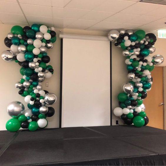 Воздушные колонны - отличная идея для входа и декора всей комнаты. Они показывают гостям, где они должны войти на вечеринку, тепло приветствуют и задают тему. Наполненные гелием шарики могут быть корпоративных цветов. На колоннах сверху можно разместить звезду из фольги или тематический воздушный шар.