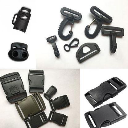 Пластиковые элементы легкие, удобные, в обращении простые. Применяются в изделиях из нейлона или полиэстера: школьные и туристические рюкзаки, дорожные и спортивные сумки. Для сумок из такого материала используется именно пластиковая фурнитура, так как металлическая плохо сочетается с синтетическим текстилем, к тому же вышеперечисленные сумки могут часто подвергаться высокой влажности.