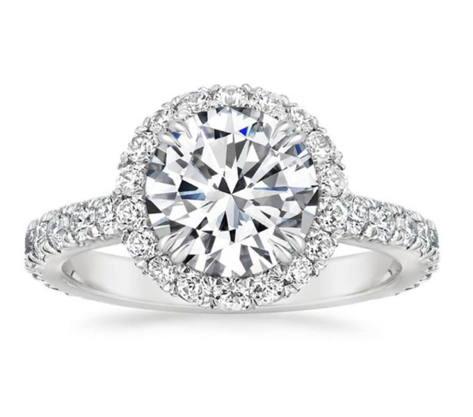 - Гало кольца. Популярность гало-колец также растет. Их инкрустированный дизайн делает центральный бриллиант больше, чем традиционные обручальные кольца. Пары получат этот эффект иллюзии с более необычными формами.
