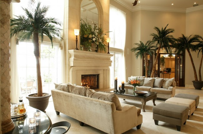 - кашпо с пальмами, прекрасно себя чувствующие в углах гостиной;