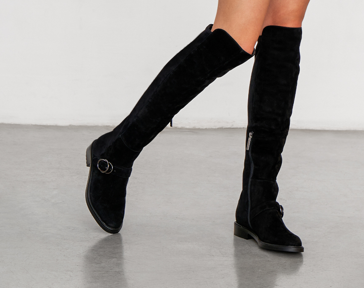 В список модной обуви вернулись высокие ботфорты из кожи и замши. Такая обувь изящная, более теплая, поэтому всегда имеет своих поклонников. Также остаются популярными сапоги с широким голенищем — гладким и гофрированным.