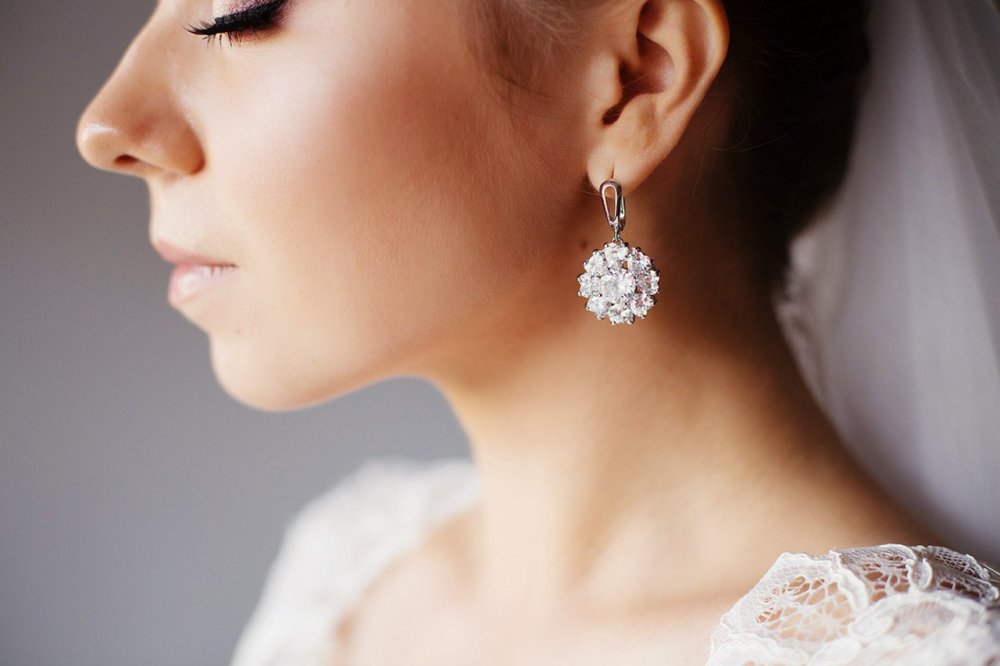 Если у вас проколоты уши, то вы вряд ли откажетесь надевать серьги в такой важный день. Серьги необходимо выбирать в зависимости от вашей прически: