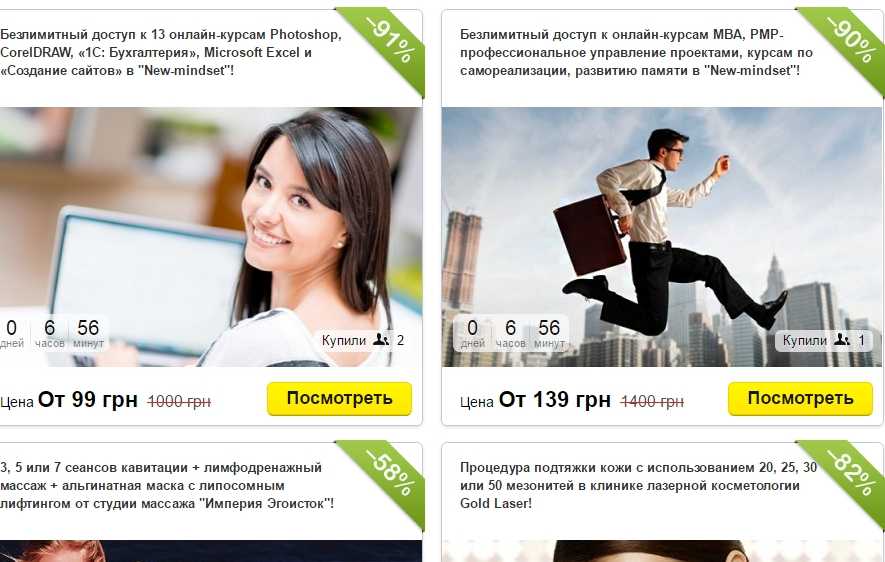 Скидки на услуги могут достигать 90%, поэтому очень выгодно, перед тем, как делать стрижку или эпиляцию, заглянуть в интернет. Конечно, все эти услуги предоставляются в реальных салонах красоты, парикмахерских, SPA салонах. На superdeal.com.ua можно найти выгодные акции в Чернигове и других городах.