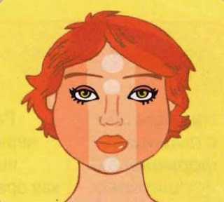 1. На чистую кожу лица нанесите основной тональный крем – в тон вашей кожи. Затем более светлый тон нанесите на центральную линию лица: на переносицу, середину лба и центр подбородка. Чтобы не было видно переходов от одного оттенка к другому, хорошенько растушуйте «границы».