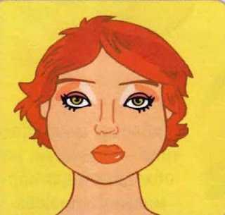 5. Немного удлинят овал лица слегка изогнутые или угловатые брови. Их можно подвести широким карандашом или тенями для бровей. А чтобы визуально «поднять» брови и пошире «открыть глаза», нанесите светлые тени на участок под брови.