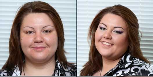 Вот как преображается полное лицо при правильном нанесении макияжа: