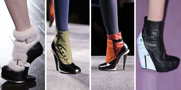В коллекции обуви от Alexander McQueen FW 2013 представлены необычные ботильоны без каблука, со своеобразной конструкцией подошвы, которые стали новинкой осеннего сезона 2012.