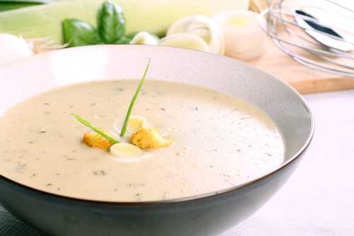 Продукты: лук репчатый - 2 головки, масло - 2 ст.л., мука - 2 ст.л., бульон - 600 мл, молоко - 400 мл, сыр - 300 г, Яйца - 1 шт., сметана - 100 г, петрушка, черный перец.