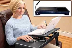 Во-вторых, ваш новый столик может быть из прочного пластика с металлическими стойками, просто пластиковым (часто с вентиляторами для охлаждения аккумулятора ПК), металлическими (чаще алюминиевыми) и реже деревянными. Многие такие подставки используют еще и для подачи завтрака в постель. Однако сами производители не рекомендуют это делать, поскольку жир, который может остаться на поверхности, попросту выведет ваш компьютер из строя.