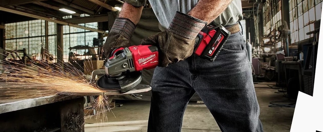 Один из самых удобных в использовании болгарок, является аккумуляторная. Работает она от быстро съемной батареи, которая после разрядки можно неоднократно заряжать. Продолжительность работы таким инструментом будет зависеть от нажатия на диск, примерно это 30 -60 минут беспрерывной работы под нагрузкой. Включается такой инструмент путём нажатия на кнопку, расположенную на корпусе и имеющую блокировку от случайного включения. Вращающий момент усиливается с помощью редуктора, который также поднимает обороты до нужной величины. Чтобы выполнить аккуратный разрез твердых материалов, диск болгарки должен вращаться со скоростью около 10 тысяч оборотов, при этом человек должен обязательно соблюдать правила безопасности. Защитный кожух, расположенный вокруг диска, защитит в случае его разрушения.