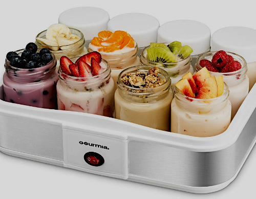 Йогуртница имеет круглую или прямоугольную емкость с прозрачной крышкой, толстыми стенками. Основная ее задача, держать нужную температуру для заквашивания молока. Обычно модели имеют в комплекте одну большую емкость на 1,5 литра или 6-8 баночек по 150-200 г. Как правило, они из пластика или стекла. Кроме йогурта можно приготовить творог, кефир, сметану, крем-брюле и пудинг.
