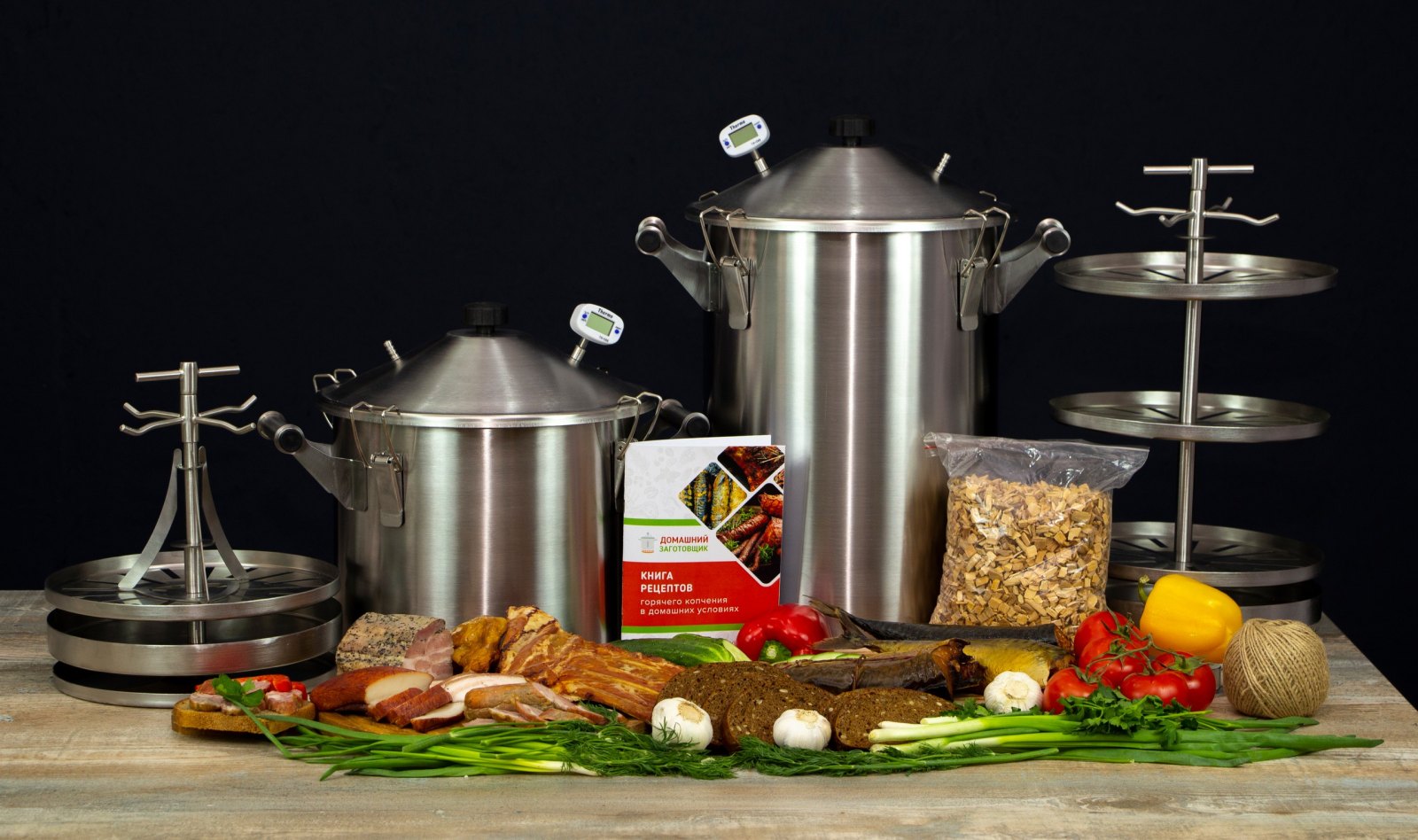 Домашняя коптильня – это вариант, который отлично будет работать практически в любых условиях. Эти небольшие изделия из нержавеющей стали можно разместить во многих местах, поэтому они подойдут для использования не только дома, но и на даче, террасе или на открытом воздухе. Вся конструкция такой коптильни герметична, поэтому обеспечивает полную безопасность. Более того, на кухне не будет пахнуть дымом, т.к. плотная крышка со специальным штуцером обеспечивает работу аппарата без попадания дыма в помещение.