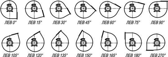 - Д – рабочее колесо с лопатками, загнутыми вперед;