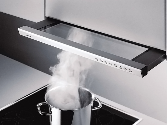 Если высота потолка не позволяет вам выбрать стандартную модель, то вы можете выбрать плоскую вытяжку, которая гармонично будет смотреть на вашей кухне.