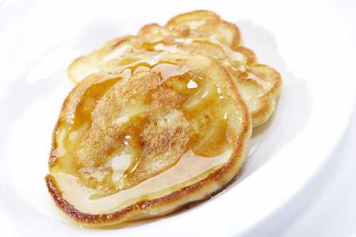 В сковороде хорошо нагрейте немного масла и выливайте ложкой тесто. У вас должен получиться небольшой толстый блин. Выпекать оладьи с обеих сторон. Подавать с медом или просто с маслом по желанию.