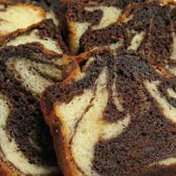 В предварительно смазанную маслом и посыпанную мукой форму большой ложкой заливаете поочередно белое тесто, тесто с шоколадом, снова белое, затем с шоколадом и так до конца.