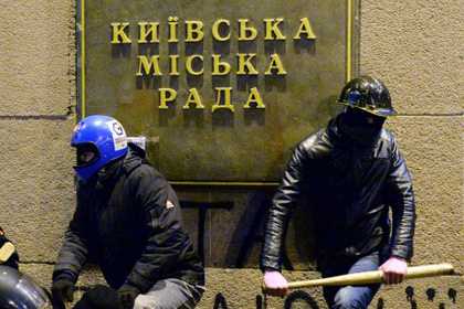 В киевскую мэрию, которая в воскресенье, 16 февраля, была освобождена сторонниками оппозиции, вскоре вновь вернулись протестующие.