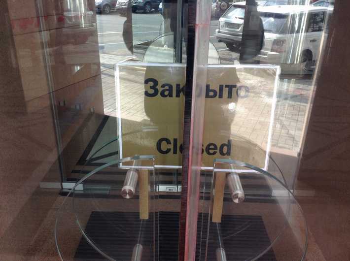 Сейчас на закрытых изнутри дверях офиса финансово-промышленной группы Ахметова висит надпись: "Закрыто".