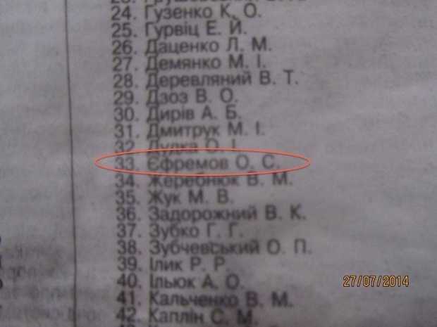 Так, в списке оказался представитель Партии регионов Александр Ефремов.