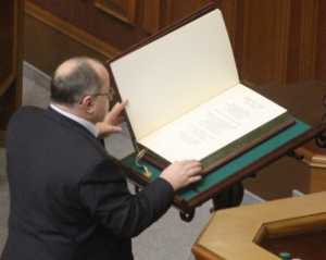 "Было принято решение, что все депутаты вместе произнесут присягу, находясь на своих местах в сессионном зале, в том числе и самый старший депутат Верховной Рады", - сказал Гройсман.