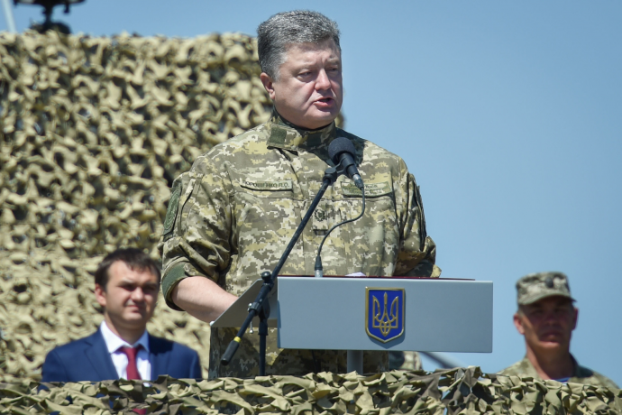 Президент Петр Порошенко во время рабочей поездки в Николаевскую область посетил 235 общевойсковой полигон, где ознакомился с работой пункта управления и руководства.