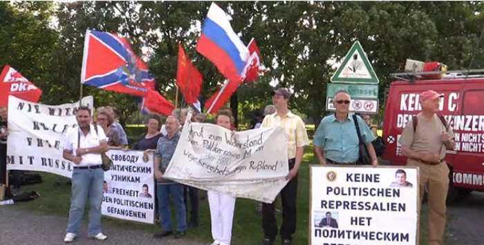 Несколько десятков пророссийских активистов собрались неподалеку от места прибытия в Берлин Президента Украины Петра Порошенко. Украинский лидер прибыл на встречу с Ангелой Меркель и Франсуа Олландом, которые возглавляют Германию и Францию. Коммунисты и «женщины против войны» сделали артинку для российских СМИ, сделав грубые и провокационные заявления против Президента Украины.
