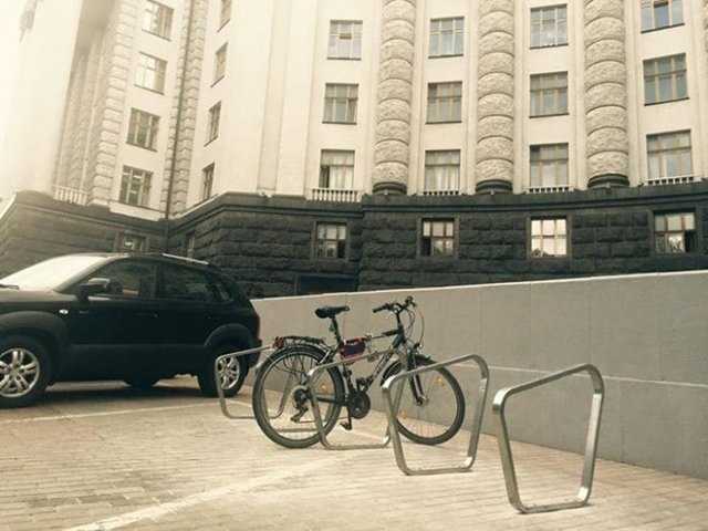 В Киеве возле здания Кабинета министров установили парковку для велосипедов.