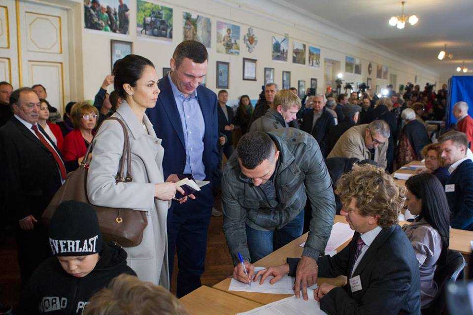 Мэр Киева Виталий Кличко проголосовал на выборах с женой и братом. Об этом он написал у себя в Фейсбуке.