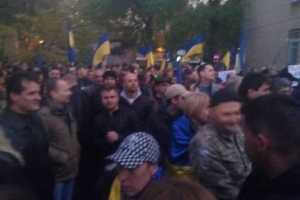 У здания Одесской ОГА собрались сотни человек. Многие из них кричат "Банду геть", стоя под государственными флагами Украины. Митингующие требуют отмены результатов местных выборов.