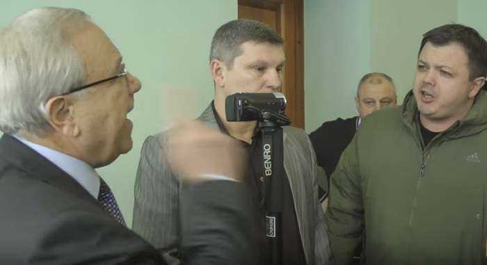 Добровольцы, которые присутствовали на месте события, потребовали вывести бывшего городского голову из помещения.