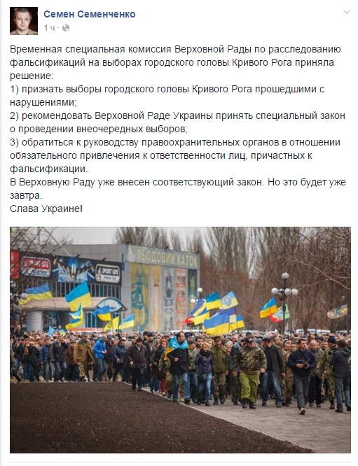 "Временная специальная комиссия Верховной Рады по расследованию фальсификаций на выборах городского головы Кривого Рога приняла решение: