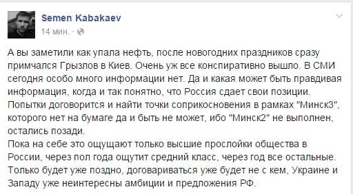 Только будет уже поздно, договариваться уже будет не с кем, Украине и Западу уже неинтересны амбиции и предложения РФ", - пишет Кабакаев.