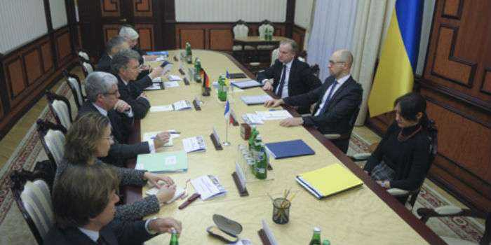 Сегодня, 18 января, премьер-министр Украины Арсений Яценюк провел встречу с внешнеполитическими советниками руководителей Германии и Франции. Обсуждались вопросы восстановления территориальной целостности Украины и сотрудничество с Евросоюзом.