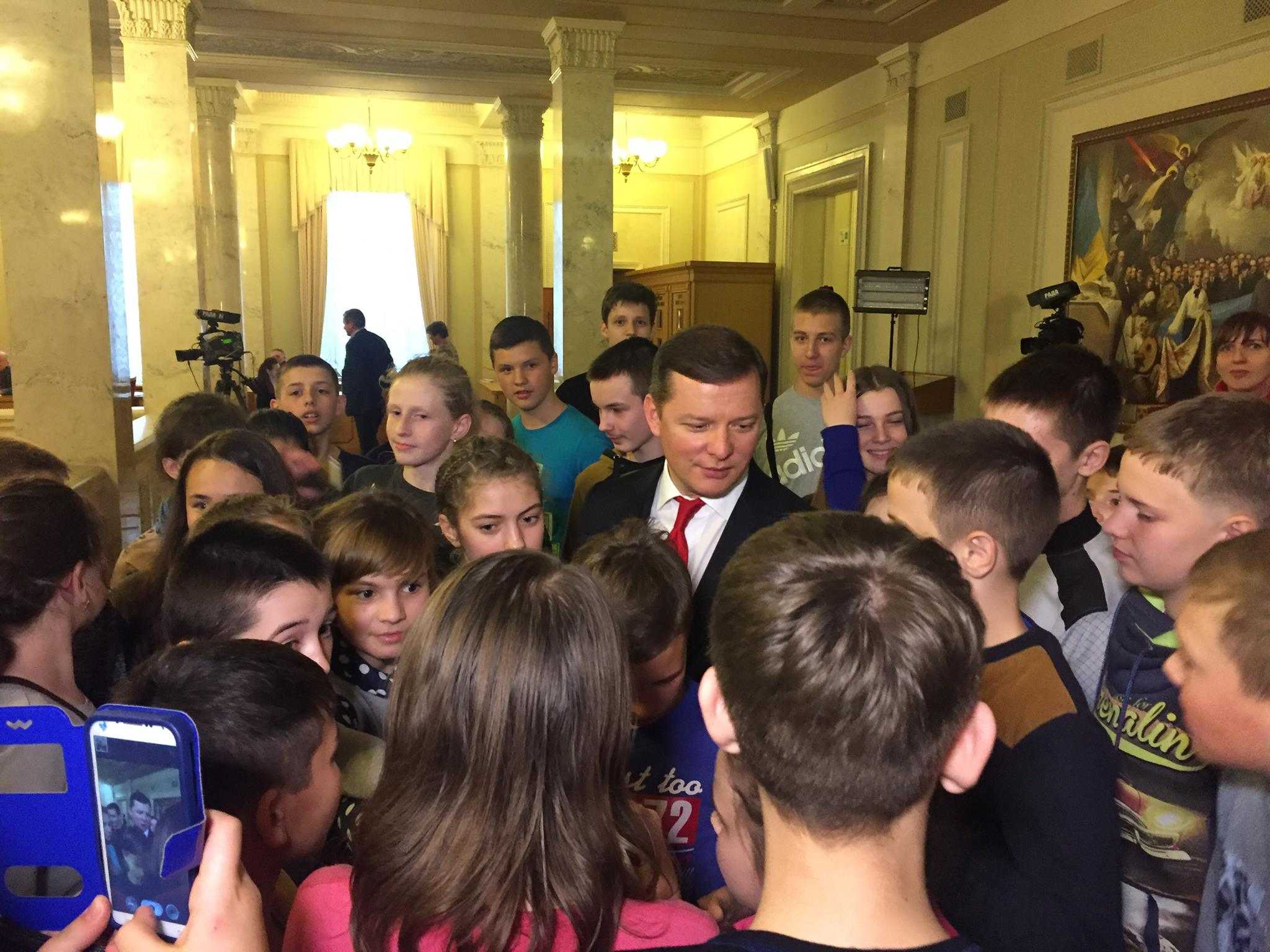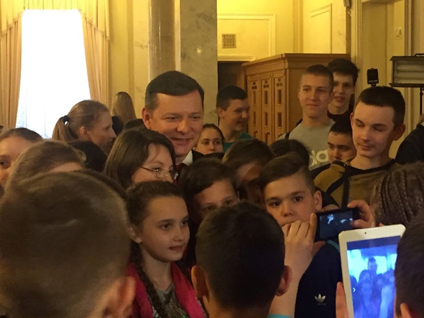 Ляшко делился опытом со школьниками, рассказывая им, что надо для того, чтобы стать депутатом. Главный радикал страны советовал школьникам хорошо учиться и слушаться родителей.