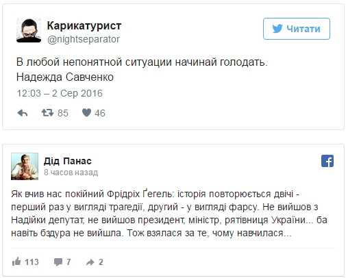Однако, очередная попытка повлиять на ситуацию голоданием мало шокировала или огорчила украинцев. Даже больше, –надцатая попытка голодания вызвала больше сарказм и смех.