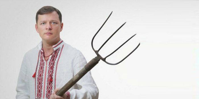 В одном из сел Хмельницкой области лидера Радикальной партии Олега Ляшко остановила семья рабочих, в руках у них были вилы.