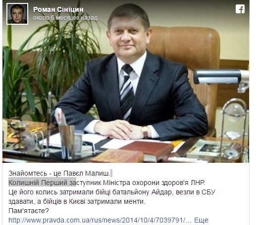 Еще в октябре 2014 года Антон Геращенко рассказал, что Малыш должен был возглавить "управление здравоохранения в "ЛНР", но там почему-то не срослось, сепаратист к исполнению обязанностей не приступил, а потом и вовсе покинул оккупированный Луганск скрывшись в неизвестном направлении.