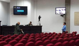 Сообщается, что телесвязь с Киевом установлена. Вести трансляцию будет телеканал «Россия». Из украинских СМИ в зал допущена только съемочная группа «112 канала».